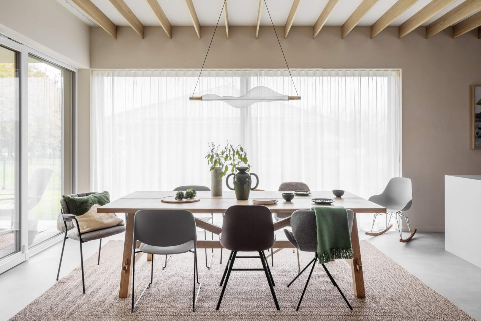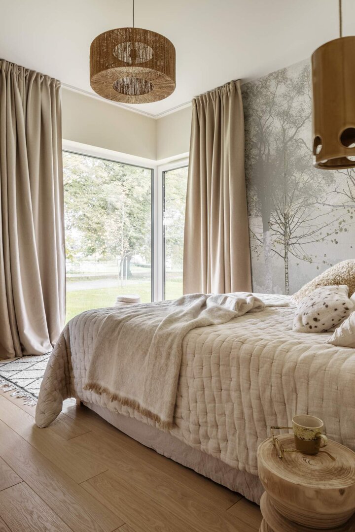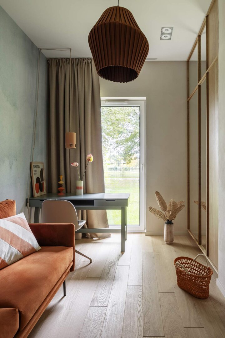 Każdy z nich jest jasny, dominuje w nich drewno i kolory ziemi, a przez obszerne okna zagląda zieleń.